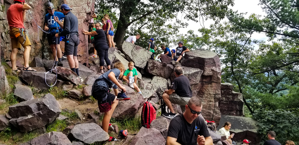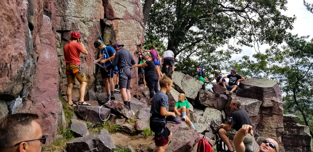 Właśnie o takim z jednych naszych corocznych wypadów w skałki do Devils Lake w Wisconsin ( 23 – 25 sierpnia 2019 ) w odniesieniu przeżytych lat, opisuję relacje radości dzieci w heroicznym czasem wyzwaniem poskromienia 25-30 metrowej drogi wspinaczkowej, twardej i wydawałoby się niedostępnej skały, przez podopiecznych Fundacji Wspierania Kultury Tatrzańskiej, 34 osobowej grupy w wieku 8 do 12 lat.