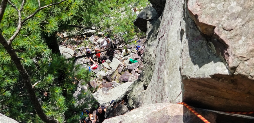 Założyliśmy trzy stanowiska o podobnej skali trudności. Radość pionierów pierwszych przejść sprawiła przekłamanie zaklętej skały w oczach tych przerażonych dzieci, a to zaklęte piękno przeżycia wspinania udzieliło się wszystkim, z rodzicami włącznie.