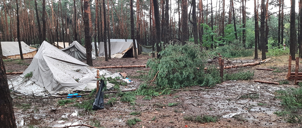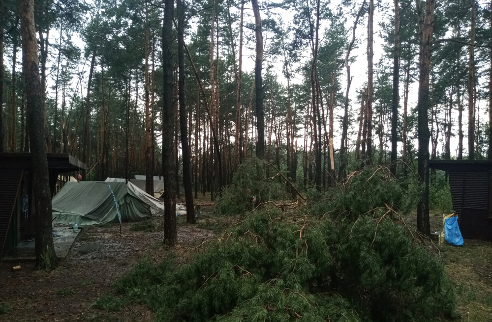 Skutki nawałnicy to poniszczone namioty, połamane drzewa na namiotach. Sytuacja wymagała natychmiastowej ewakuacji harcerzy, którą zajęła się Straż Pożarna i Policja.