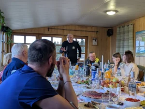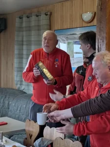 Tym razem Jubilat zebrał grono najbliższej rodziny i „rodziny” GOPR-owej w nieprzypadkowym a bardzo jemu od lat bliskim i zawsze serdecznym miejscu: Schronisku Na Hali Pod Śnieżnikiem, aby zaakcentować rocznicę w iście polskim, biesiadnym stylu. Stoły pełne doskonałych potraw i zacnych trunków sprzyjały refleksyjnym, niespiesznym rozmowom opartych na wspomnieniach przywołujących salwy śmiechu i kolejne wspomnienia, anegdoty, dykteryjki z życia w GOPR. Jak na jubileusz przystało, był też pyszny tort i upominki nie tylko dla jubilata, ale również dla gości. Jacek zadbał o pamiątkowy brelok jubileuszowy dla wszystkich uczestników.