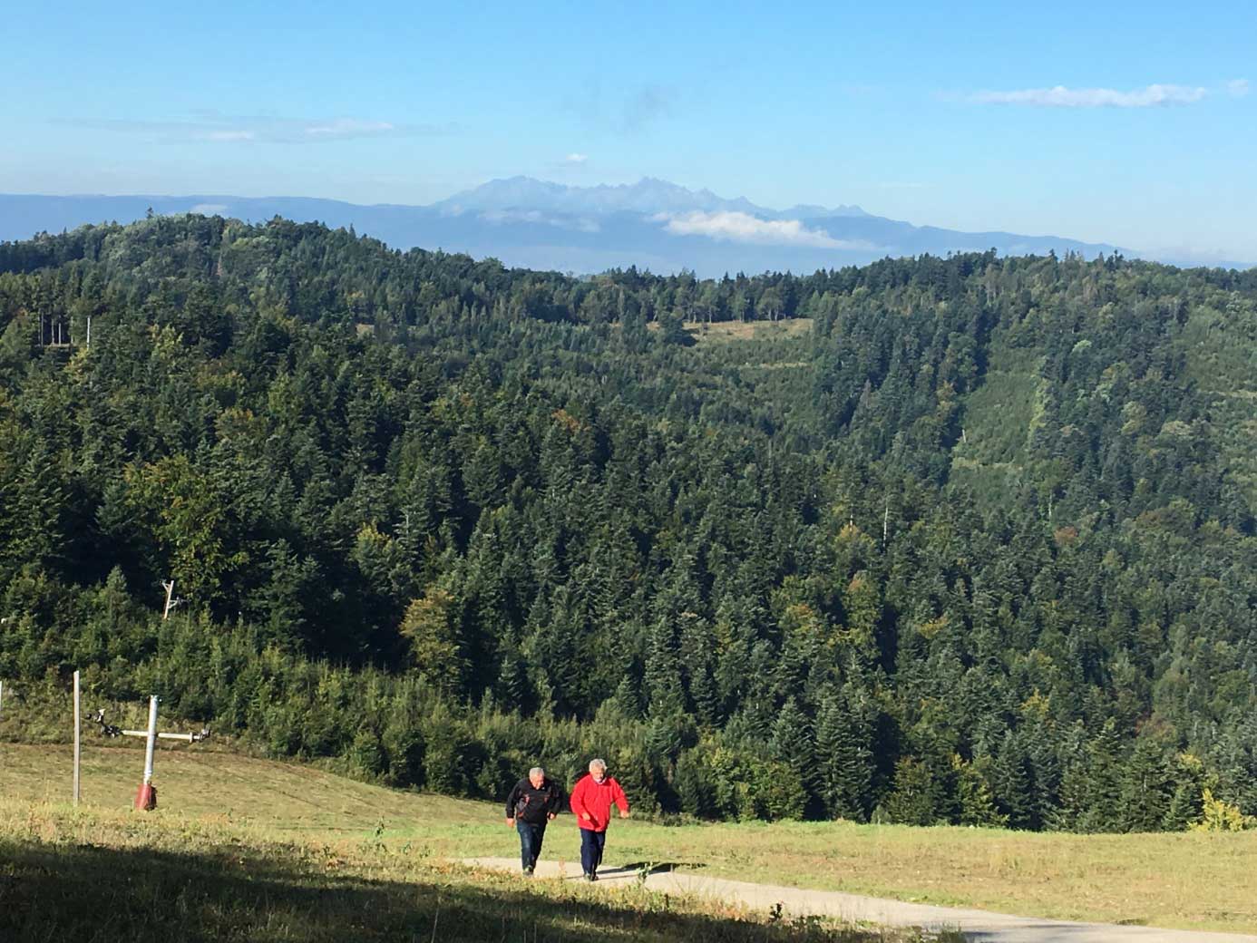 Słoneczny poranek zachęcił do wyjazdu w góry. Samochodami terenowymi dojeżdżamy pod dyżurkę HS na zboczu Lysej (1068 m), skąd pieszo wychodzimy na szczyt by podziwiać przepiękną panoramę. Widać Tatry, Pieniny oraz bliską nam Jaworzynę Krynicką z trasami narciarskimi. Po zejściu bufet piwny urządzony przy dyżurce HS Čergov.