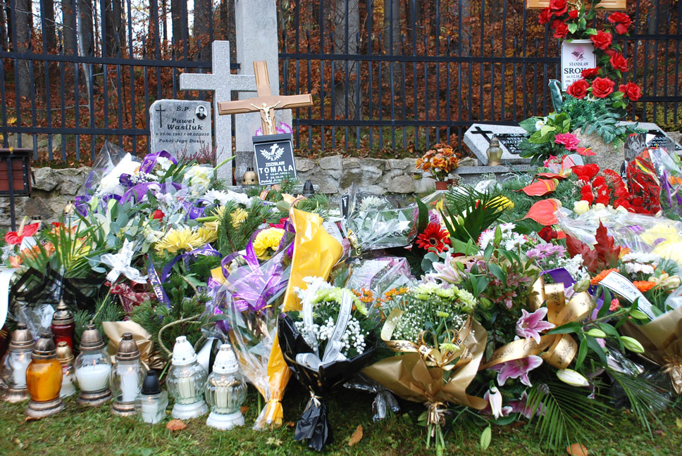Urna z prochami Zdzicha spoczęła w nowej części pięknie położonego cmentarza Szklarskiej Poręby.