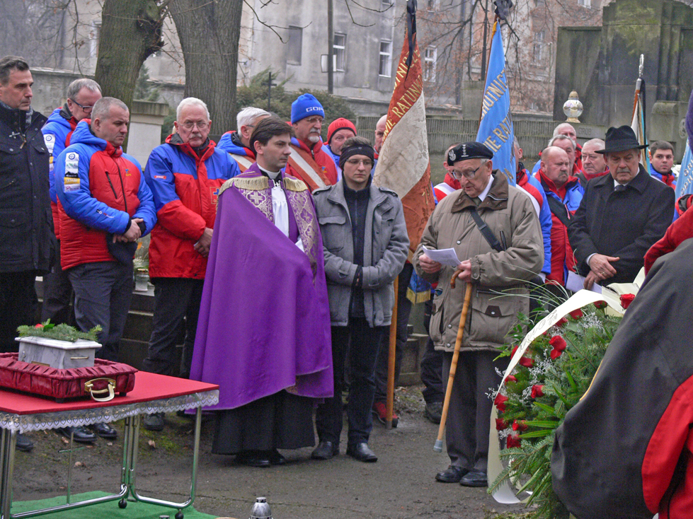 Jak napisał nam jeden z ratowników Grupy Karkonoskiej GOPR, uroczystość pożegnalna na Cmentarzu Rakowickim zgromadzila bardzo wiele osób z różnych środowisk. Do Krakowa przybyło 12 pocztów sztandarowych, w tym ze wszystkich Grup GOPR (z wyjątkiem jednej), Koła Seniorów Lotnictwa, harcerzy, Kombatantów. W kaplicy odprawiono uroczystą mszę,  po której nastąpiły przemówienia. Przemawiał przedstawiciel Seniorów Lotnictwa, przedstawiciel Kombatantów, oraz były Naczelnik GOPR – Jan Komornicki.