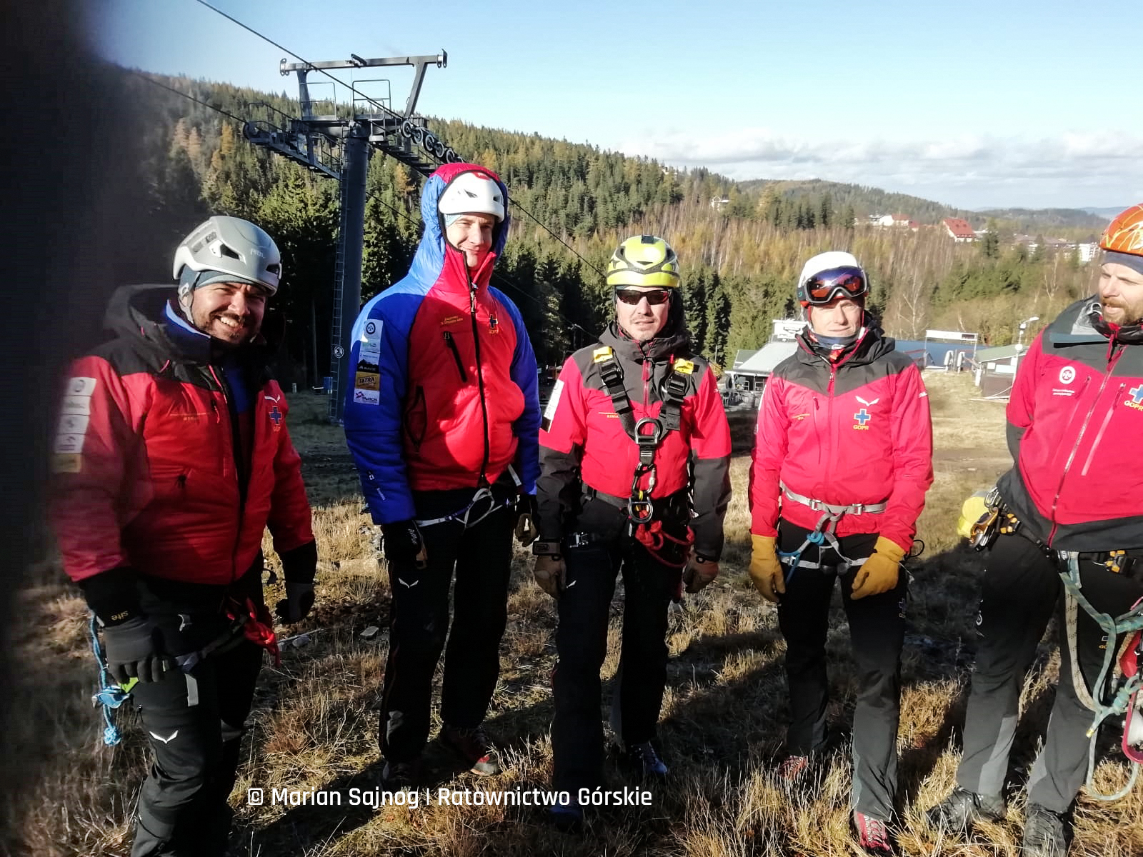 Zgrupowani w schronisku Strzecha Akademicka ratownicy, po 10 z każdej ze stron, pod okiem czterech instruktorów ćwiczyli na udostępnionym przez Ski Arena Karpacz zimowym wyciągu narciarskim.